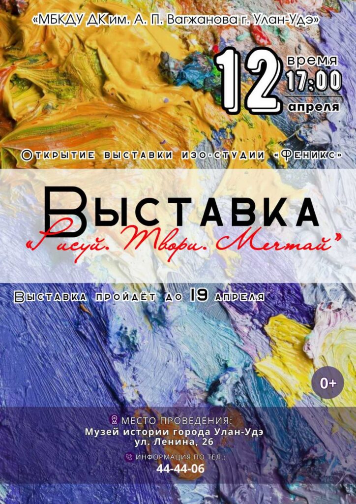Приглашаем вас на выставку работ изостудии «Феникс» Дома культуры им. А.П. Вагжанова. Открытие состоится 12 апреля в 17:00 в Музее истории города Улан-Удэ.