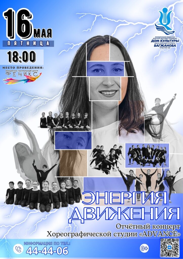 16 мая в 18:00 приглашаем всех на отчётный концерт хореографической студии «Advance» — «Энергия движения»!