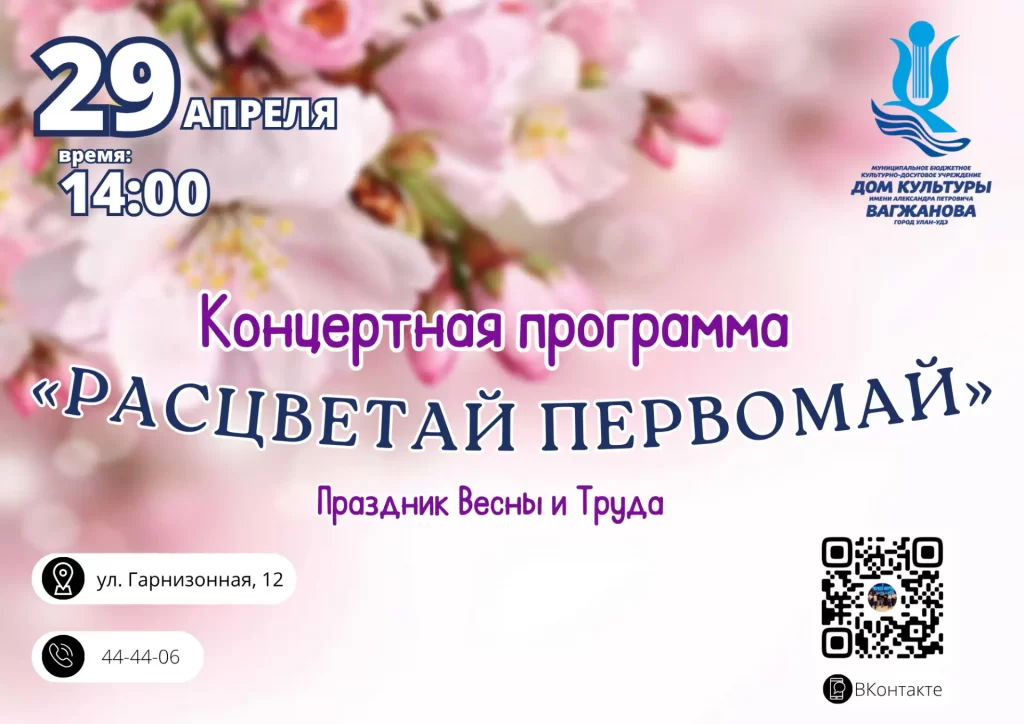 9 апреля в честь празднования Весны и Труда Дом культуры приглашает всех желающих на концертную программу «Расцветай Первомай»!
