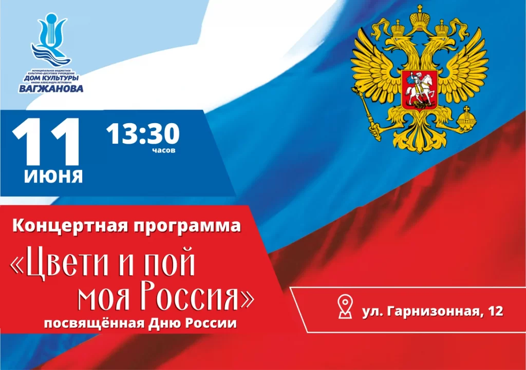 11 июня в 13:30 приглашаем вас на концертную программу «Цвети и пой, моя Россия», посвященную Дню России.
