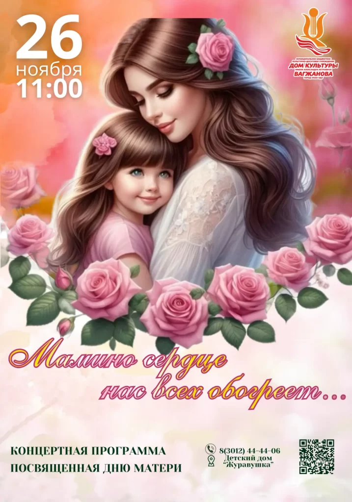 В этот день для гостей прозвучат трогательные песни, добрые слова поздравлений и творческие номера, наполненные любовью, теплом и благодарностью самым дорогим людям — мамам.
