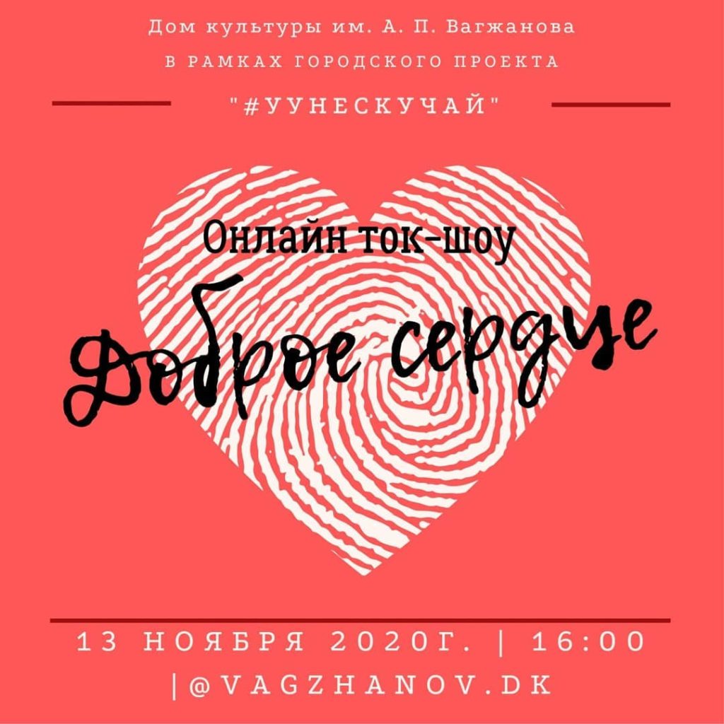 13 ноября в 16. 00 часов присоединяйтесь к самому доброму прямому эфиру в формате ток-шоу «Доброе сердце», посвященному Всемирному дню доброты.