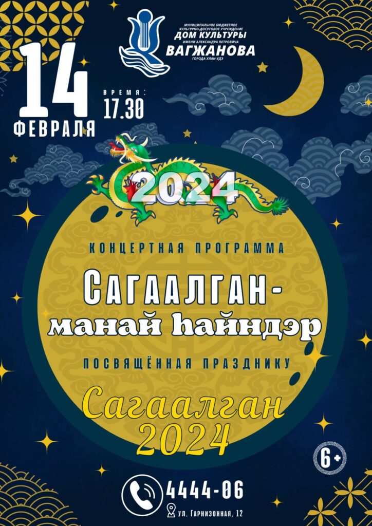 14 февраля, в 17.30 часов, в прекрасном Доме культуры имени А.П. Вагжанова, состоится концертная программа под названием «Сагаалган — манай hайндэр». Это мероприятие обещает стать незабываемым праздником для всех любителей и ценителей национальной музыки и культуры.