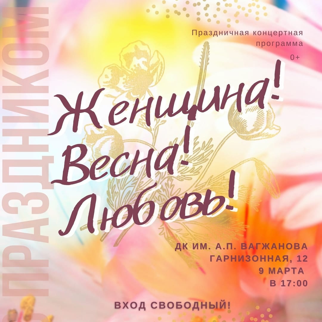 Международный женский день! Это время, когда прекрасная половина человечества принимает подарки и пожелания в свой адрес… 🌼 9 марта в 17:00ч. Для милых женщин, коллектив ДК Вагжанова, подарит своё творчество … Читать далее →